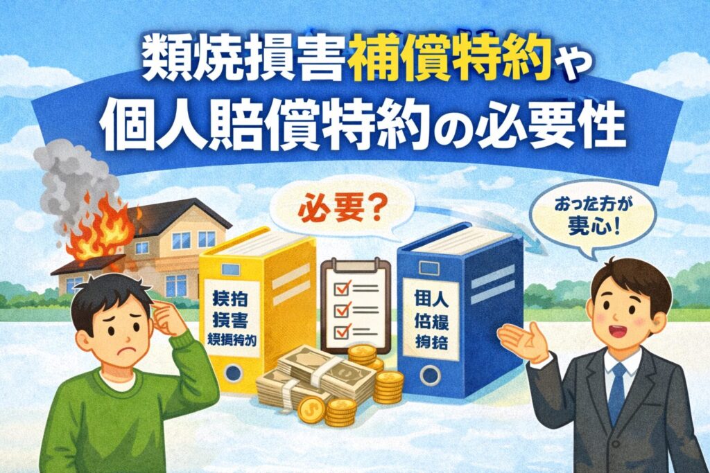 ここからは、隣家への補償を考えるうえでよく名前が出てくる類焼損害補償特約について詳しく解説します。家づくりの相談を受けていると、「この特約って本当に必要なんですか?」とよく聞かれるんですよね。ここ、気になりますよね。