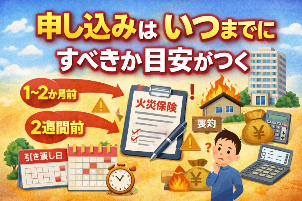 まずは、火災保険に入るタイミングを考えるうえでの大前提から整理します。ここを押さえておくと、どのパターンでも判断しやすくなります。