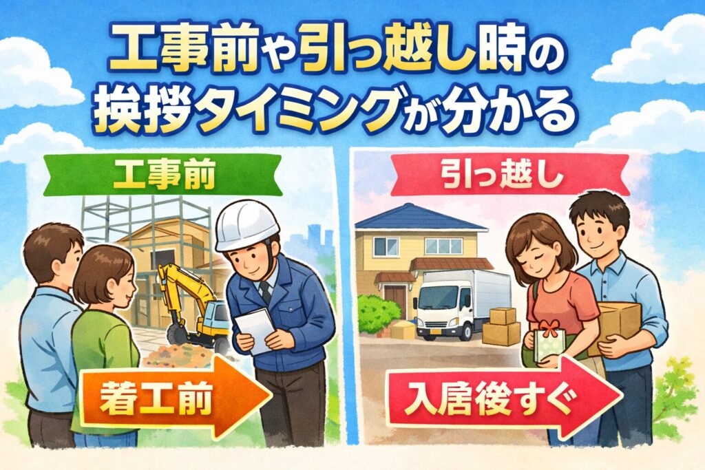 - 工事前や引っ越し時の挨拶タイミングが分かる