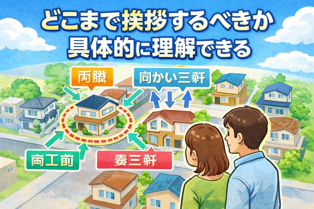 まずは、近隣挨拶の基本となる考え方を押さえておきましょう。ここを理解しておくと、実際の行動で迷うことがかなり減ります。ここでは「いつ・どこまで・何を意識するか」という軸で整理していきます。