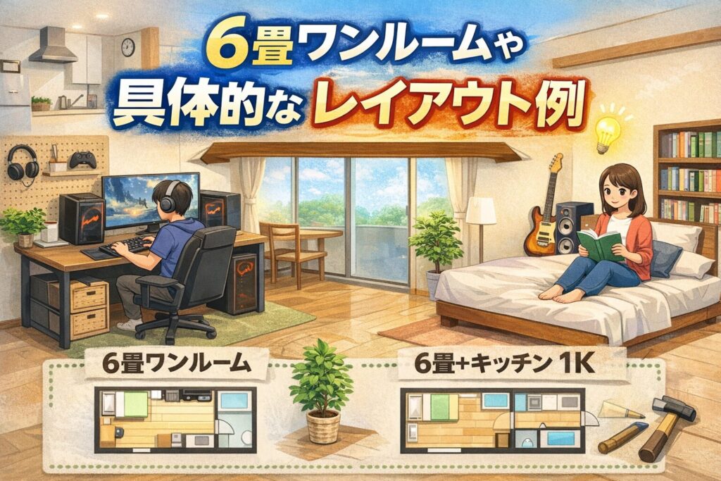 - 6畳ワンルームや1Kでの具体的なレイアウト例