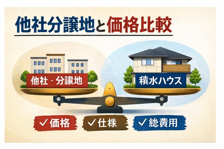 積水ハウスの分譲地が高いかどうかを判断するうえで、他社分譲地との比較は避けて通れません。ダイワハウス、住友林業、セキスイハイム、ヘーベルハウスなど、大手メーカー各社も分譲地を展開していますが、価格が近い=中身が同じというわけではないんですよね。ここ、意外と見落とされがちです。