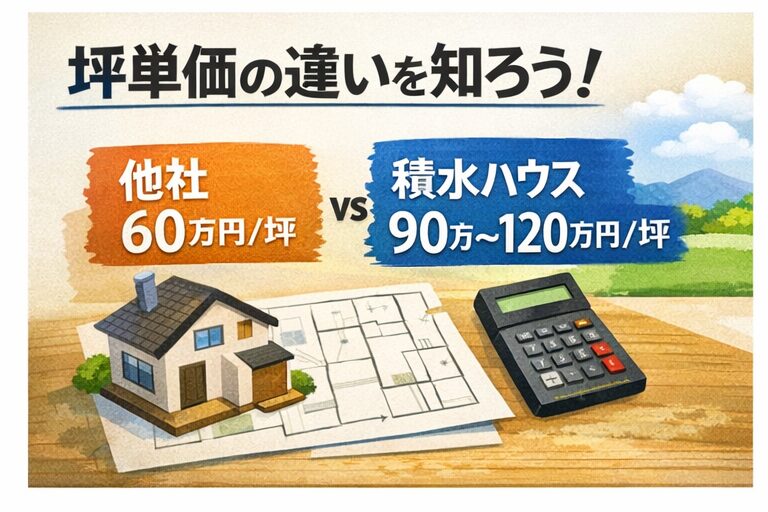 土地だけでなく、建物を含めた坪単価も高めです。積水ハウス全体の坪単価は70万円から120万円程度が目安と言われていますが、分譲地の場合は仕様がある程度高めに設定されていることが多く、下限に収まるケースは少なめです。