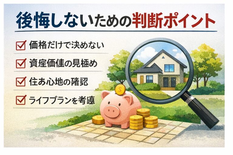 結局のところ、将来の後悔を減らすために大切なのは、「資産価値があるかどうか」よりも、「その価格で今の暮らしに無理がないか」です。住んでいる間の満足度が低ければ、たとえ価値が残っても意味が薄れてしまいますよね。